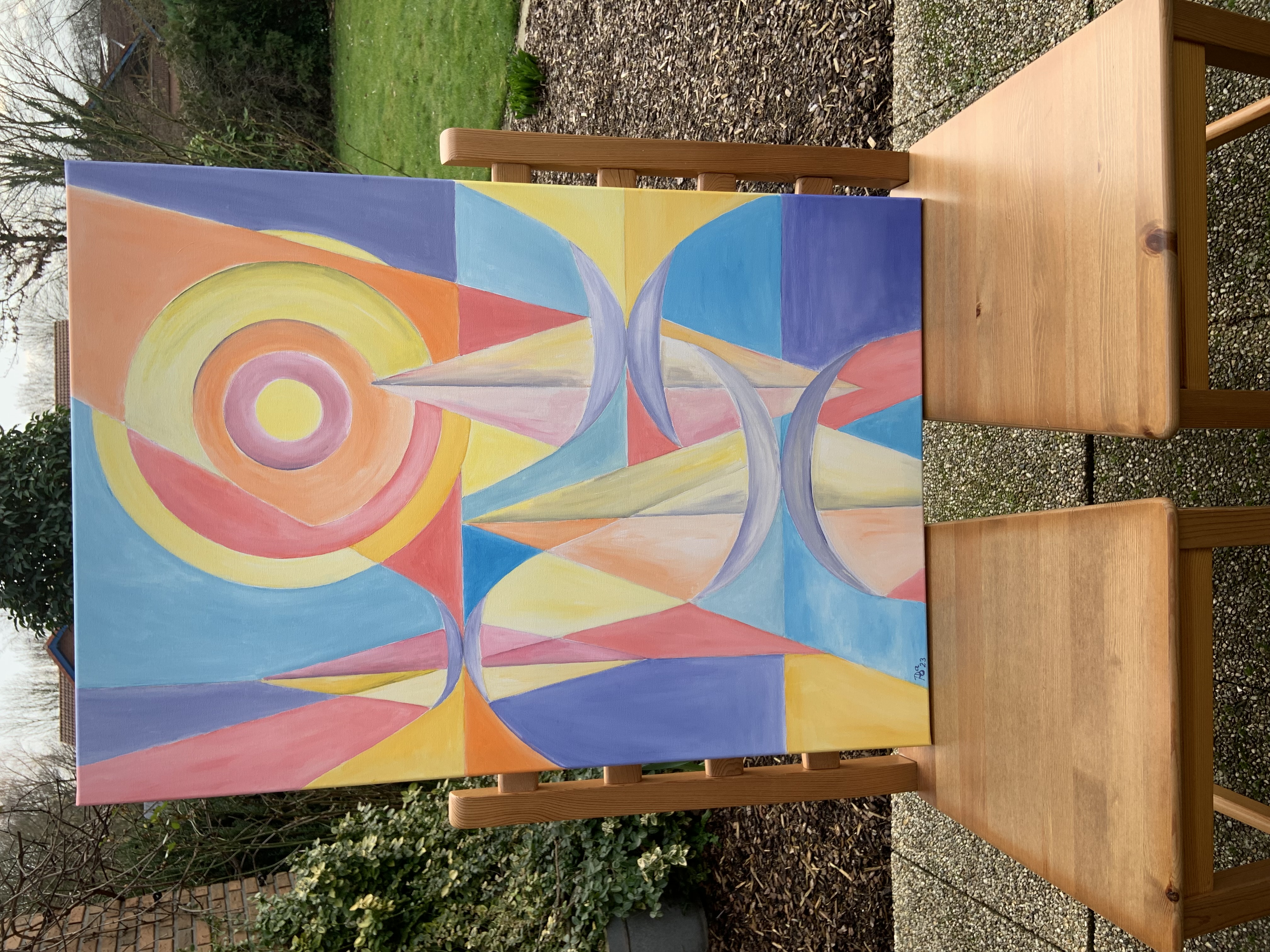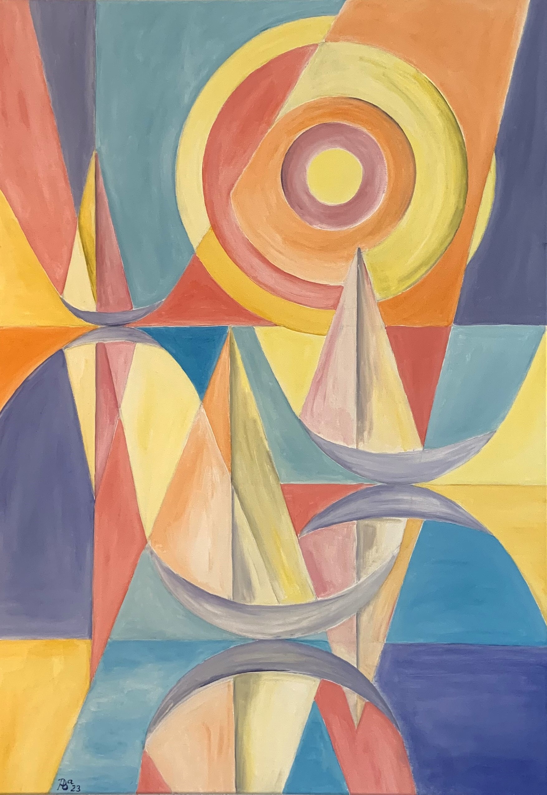 Der Zusammenhang von mathematischen Gegebenheiten mit dem Blick auf unsere Umgebung steht hier im Vordergrund. Dieses ist als Beispiel anhand von Segelbooten dargestellt. Die Segelboote spiegeln sich im Meer und scheinen dabei wie die Grafen einer Funktion zu fungieren. Die pastellartigen Töne zeigen, dass dieser Zusammenhang eher zart und unauffällig ist. Er ist im Alltag damit nicht immer wahrnehmbar, aber trotzdem vorhanden.
