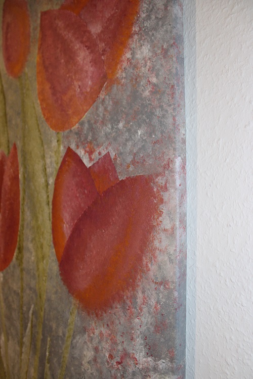 Blumen jeglicher Art sind eine Art Liebeserklärung der Natur an die Geschöpfe der Erde. Dabei ist unumstritten, dass sie eine psychologisch stimmungsaufhellende Wirkung haben und stressreduzierend wirken. Sie lassen uns sich gut fühlen. Allein ihr Dasein bringt eine entspannte und harmonische Atmosphäre in den Raum, die auch einen Einfluss auf die sich darin befindenden Personen hat. Dieses Gemälde will diese positiven Energien einfangen und sie in den Raum transportieren, um so für mehr Wohlbefinden zu sorgen. Es soll auch widerum eine Liebeserklärung an die Natur selbst darstellen, mit dem Gedanken der Natur zu huldigen und ihr für die „kleinen, bunten“ Wunder dankbar zu sein.